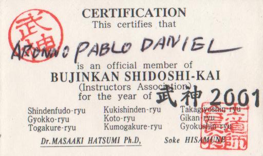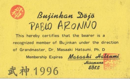 Tarjeta de socio general (Membership): se aplica a todos los miembros de la Bujinkan Dōjō.